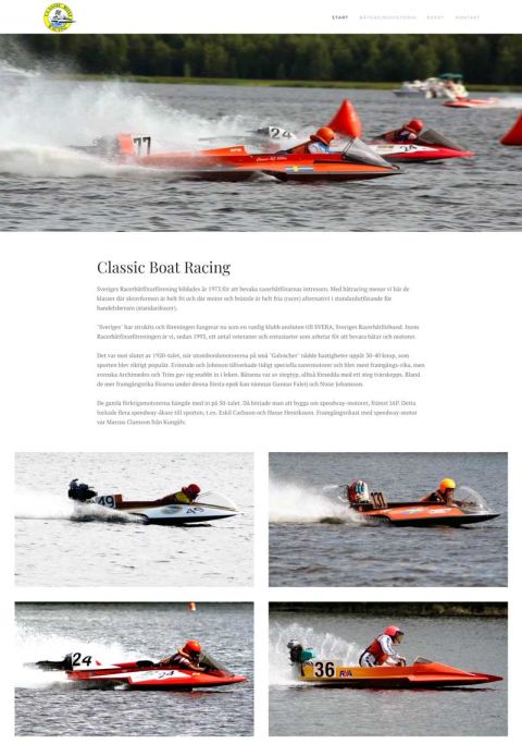 Website on behalf of the Swedish Racing Boat Drivers' Association about classic boat racing. History, facts and events and activities.
